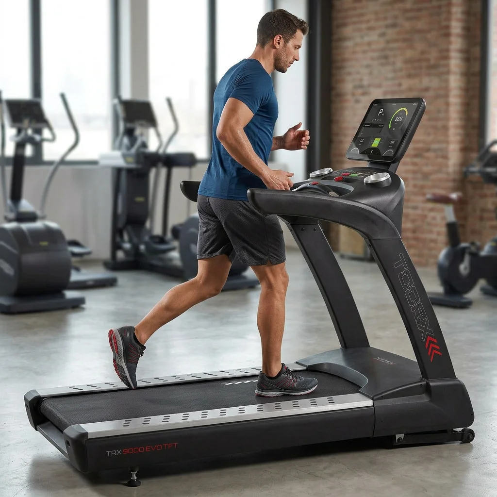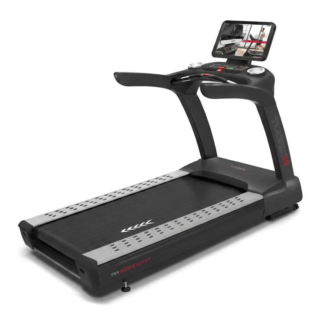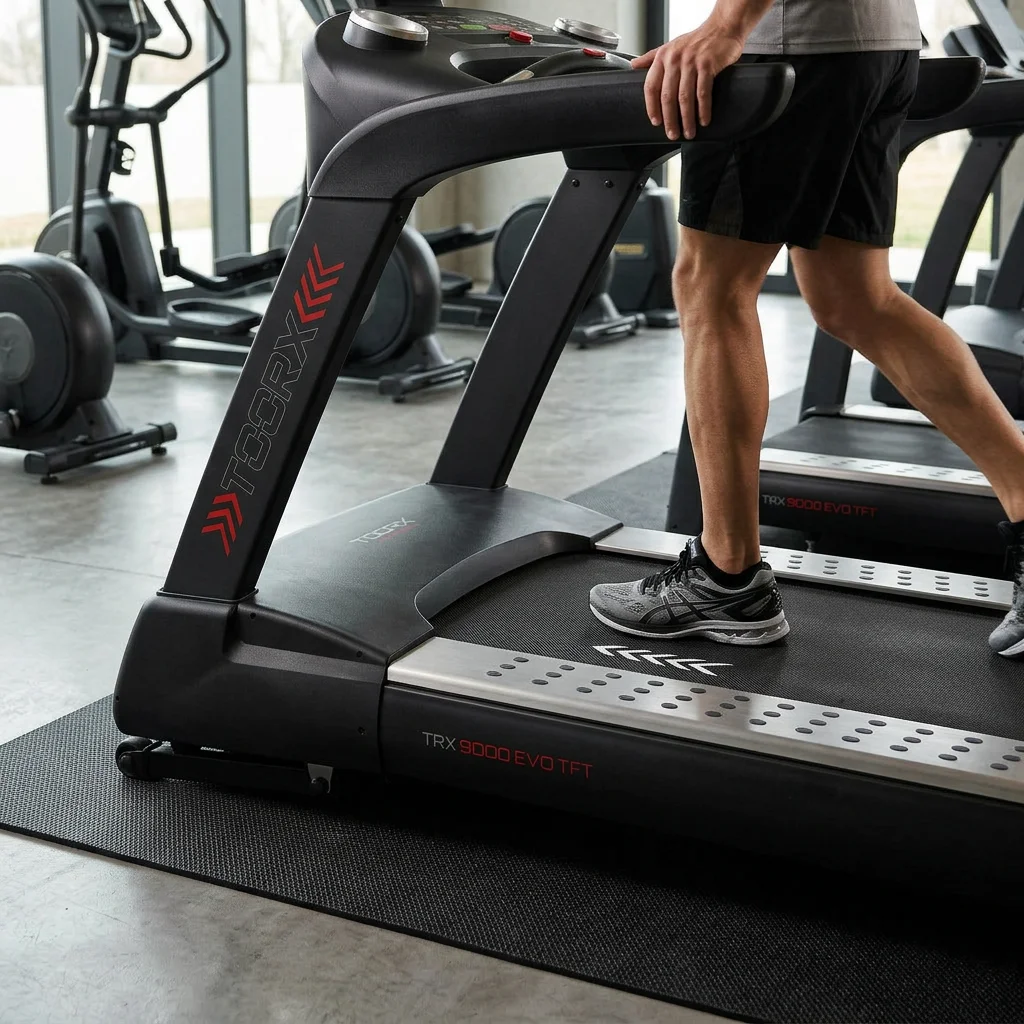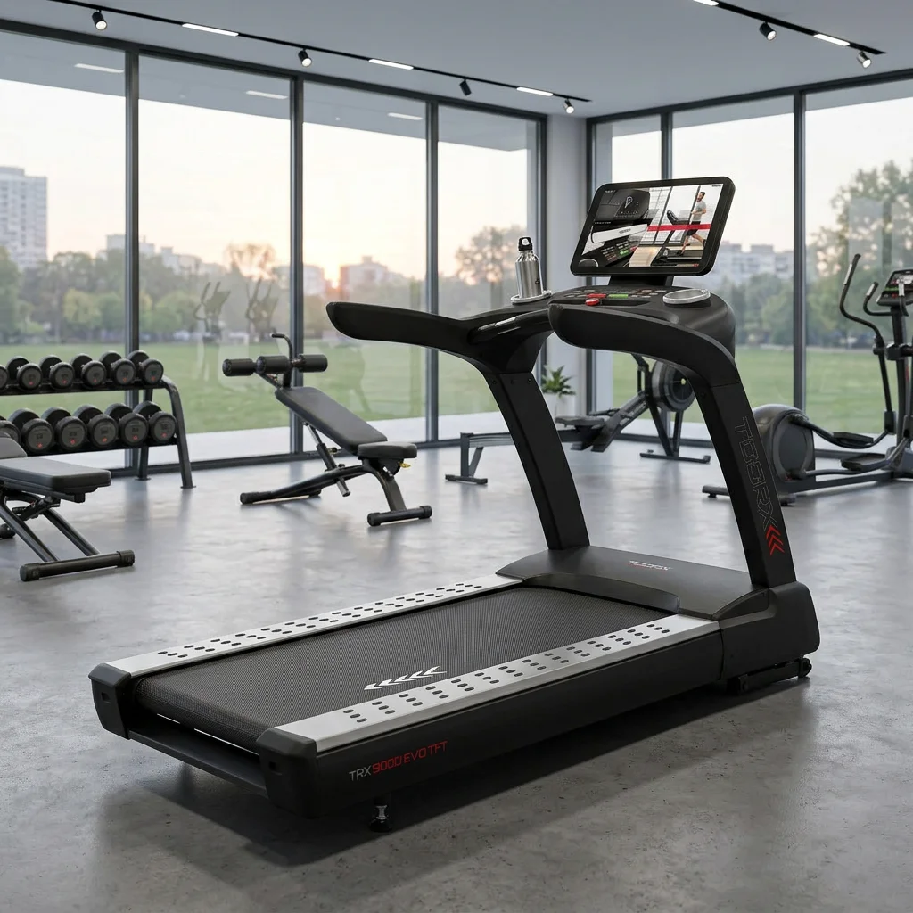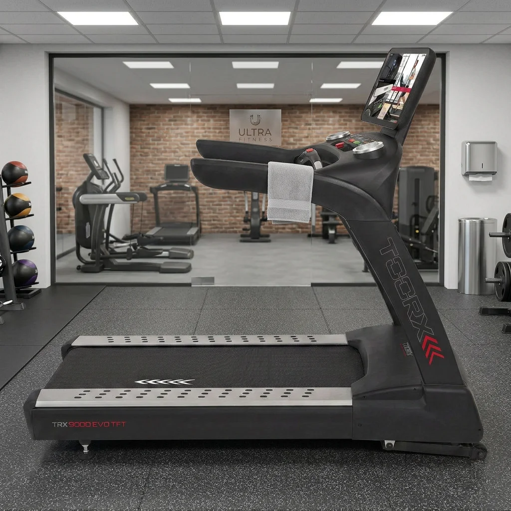 Toorx TRX-9000 EVO TFT je profesionalna tekalna steza, ki združuje industrijsko vzdržljivost z najsodobnejšo multimedijsko izkušnjo. Za fitnes centre in hotele, ki želijo ponuditi več kot le gibanje — ponuditi izkušnjo — je TFT model najboljša izbira v liniji TRX-9000.